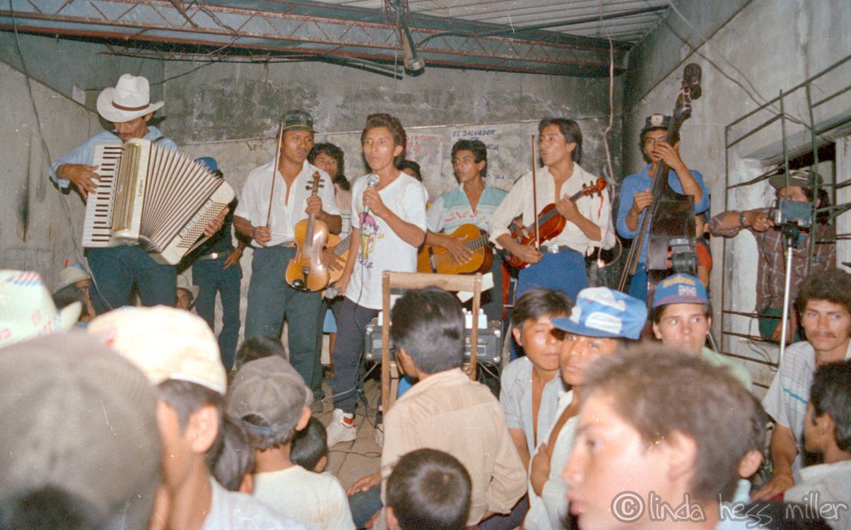 En agosto de 1990, el municipio de Perquín se convirtió en el escenario de una festividad que unió a pobladores y combatientes. Linda Hess Miller registró este evento donde la música y el convite temporal suspendieron la rigurosidad del conflicto armado.